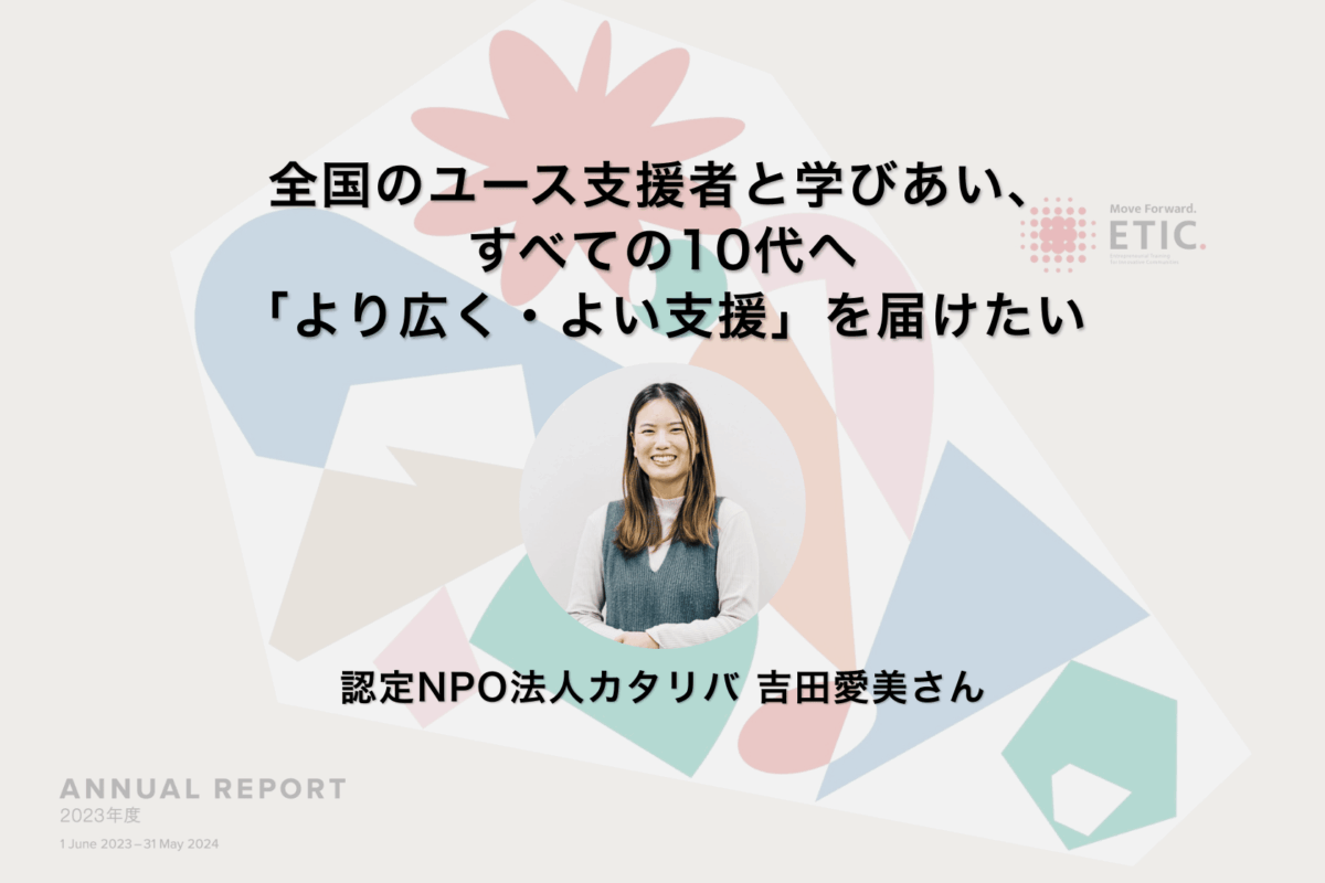認定NPO法人カタリバが取り組む「ユースセンター起業塾」。活動を始めた背景やそこからの学び、今後について、吉田愛美さん(ユースセンター起業塾 事業責任者)にお話を伺いました。