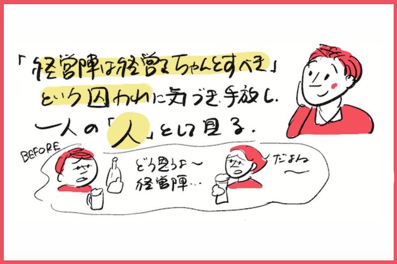 番野:私も反省しているのですが、ディレクターは経営者としての報酬と権限を与えられているのだから、それに見合った経営をちゃんとすべきだと無意識に思い込んでいました。けれどディレクターを1人の人間として見たとき、素晴らしい起業家ではある一方で、組織マネジメントに強みがあるかというと、意外とそうでもないかなと思ったんですね。そういう人たちに、無理やり経営を押し付けていたんだなと気づかされました。