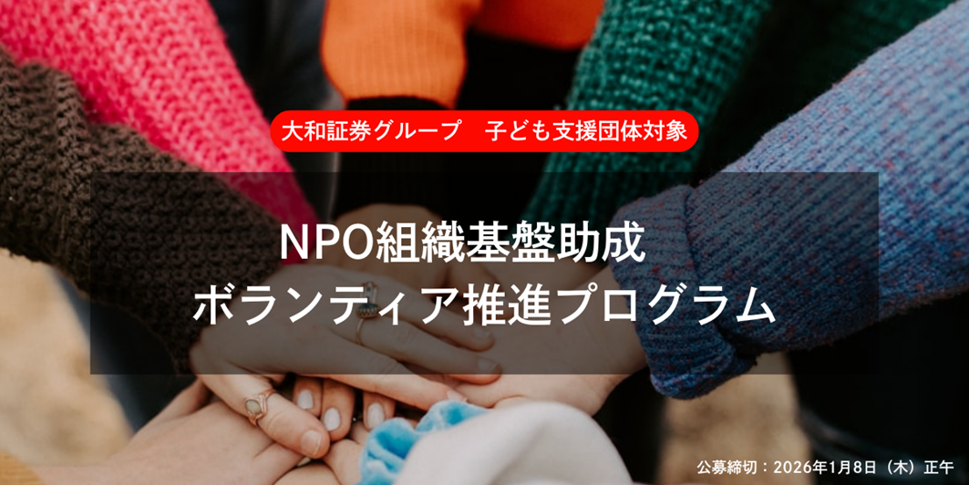 NPO法人ETIC.(所在地:東京都渋谷区)と株式会社大和証券グループ本社(以下「大和証券グループ」、所在地:東京都千代田区)は、子どもの支援に取り組む民間非営利団体(以下「NPO」)を対象に、ボランティア推進に特化した助成プログラムの公募を開始しました。