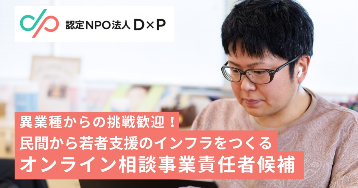 | 民間から若者支援のインフラを。 オンライン事業を次のフェーズへ進めるリーダー募集! 認定NPO法人D×P(ディーピー) |