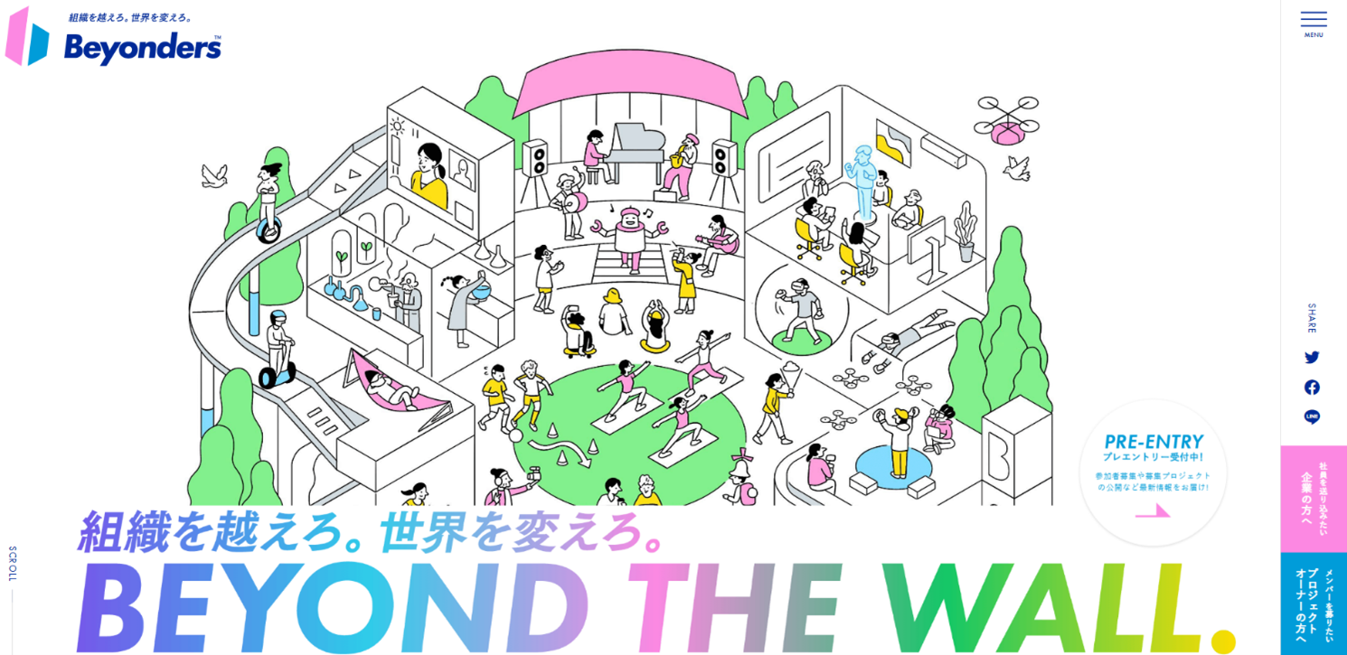 Beyondersとは、社会課題解決に取り組む「名もなき挑戦」に対して、友人の起業を手伝うように、共感したら組織を越えて、気軽に仲間になれる約3か月のプロジェクト参画のしくみです。